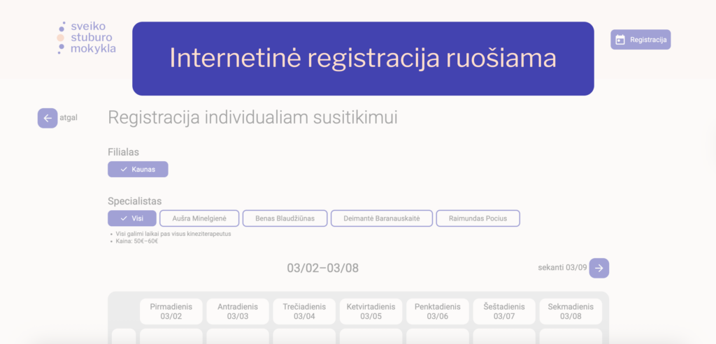Grupinių mankštų tvarkaraštis VilniusKaunasVilniusKaunas Registruokis Registracija telefonu: Kaune: +370 650 77505 Vilniuje: +370 672 21007 Individualių mankštų tvarkaraštis Registracija telefonu: Kaune: +370 650 77505 Vilniuje: +370 672 21007